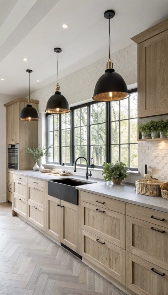 - The Mixed-Material Trend: High-end designs are now pairing two finishes—such as warm wood lower cabinets with matte-finished uppers in a “Greige” or soft “Sage Green.”