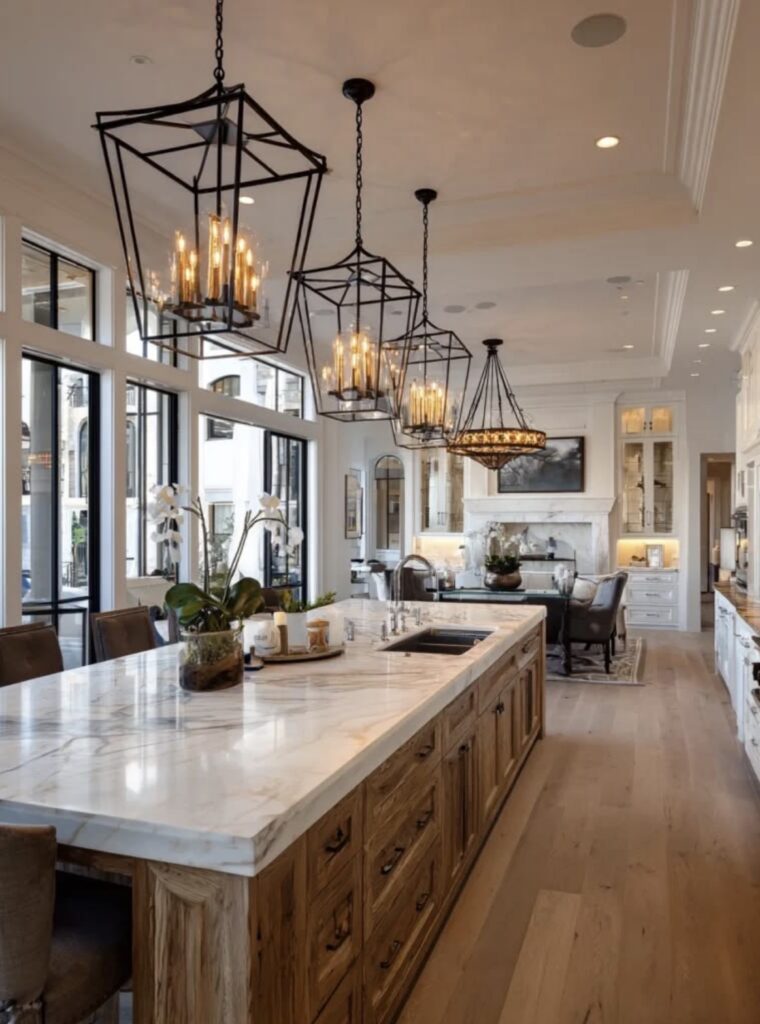 - Sculptural Lighting: Over the island, we are seeing oversized, asymmetrical pendants made of hand-blown glass. Lighting in 2026 is about “warm, human-centric” glow rather than harsh utility.